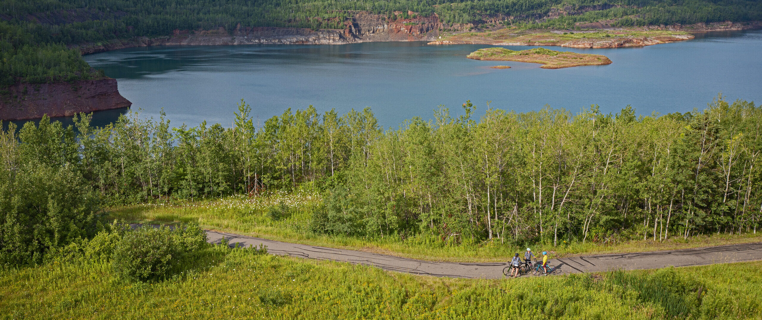 Start and end this 13.3-mile out and back of the Mesabi segment in Virginia—the Queen City of the Iron Range. On your way out, pedal or stroll through the historic Olcott Park, grab a bite to eat at the community-owned co-op, or satisfy your sweet tooth at Minnesota’s oldest candy store. Then, cycle across Minnesota’s tallest bridge and climb up and through Pike Rock Cut.